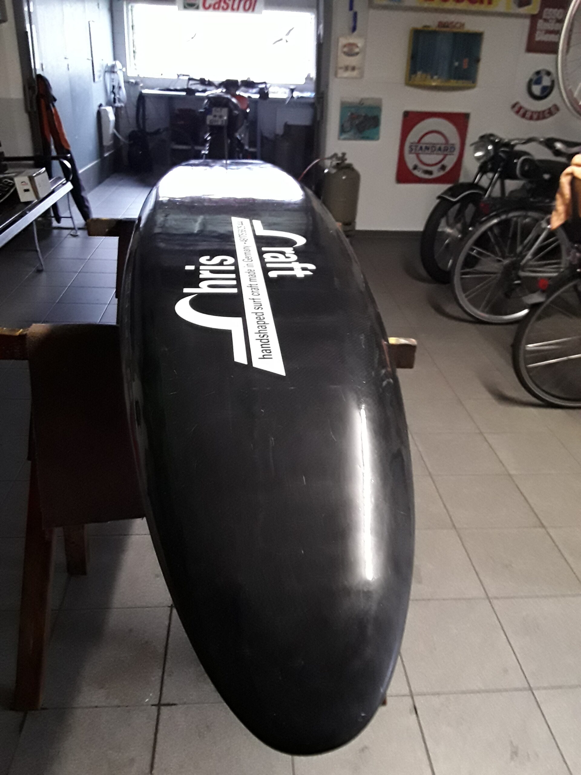 Het paddle board is dun en erg licht. Deze is momenteel eigendom van een professioneel atleet van het Duitse nationale team.