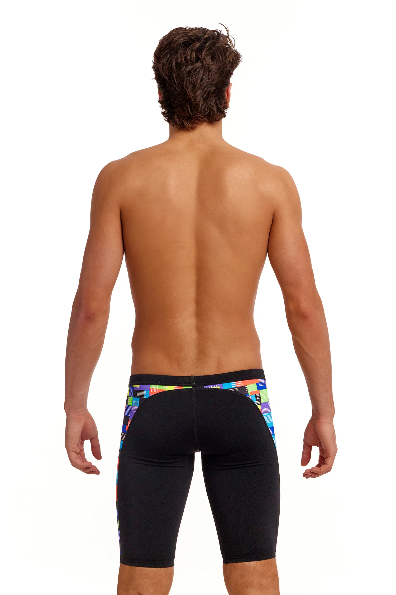 De Funky Trunks Training Jammer heeft een lengte van heup tot knie. De jammer beschikt over een trekkoord bovenaan de zwembroek en is voorzien van een elastiekenband zowel aan de onder als bovenkant.