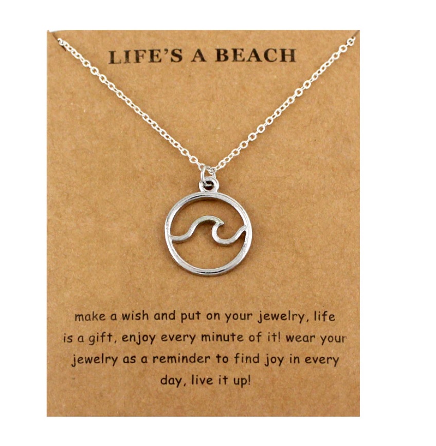 Ketting wordt geleverd op duurzaam kraft papier met bovenaan de tekst ‘LIFE’S A BEACH’.